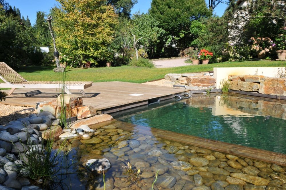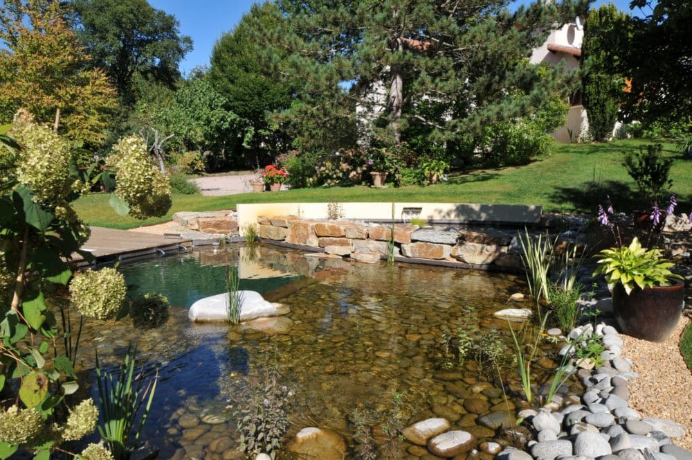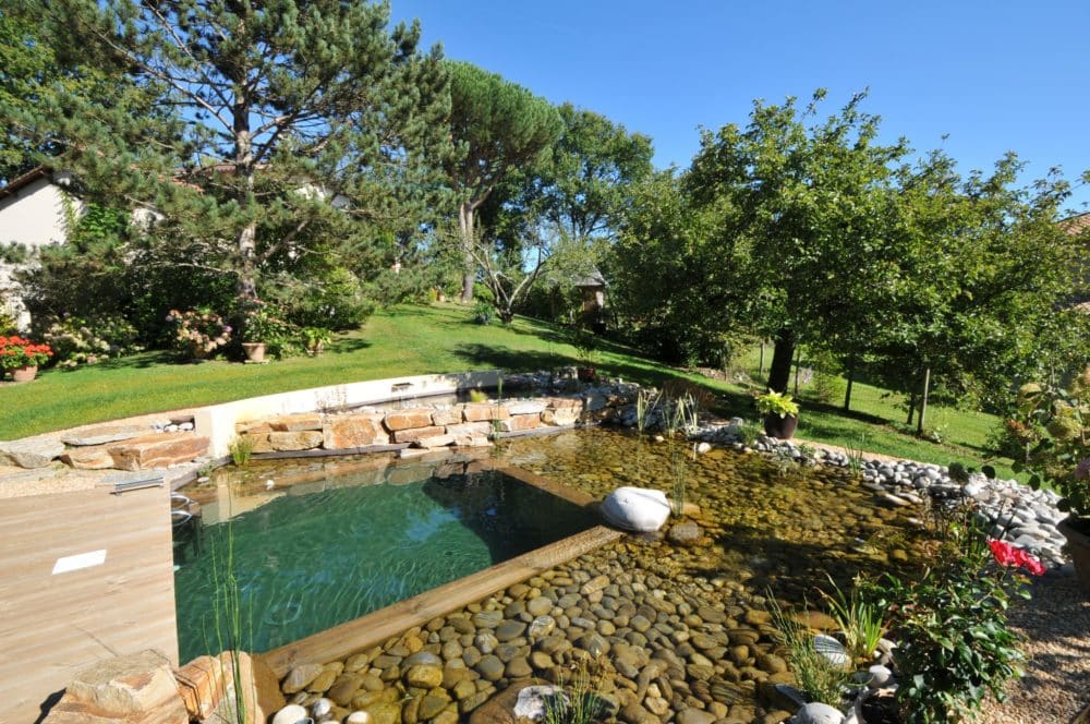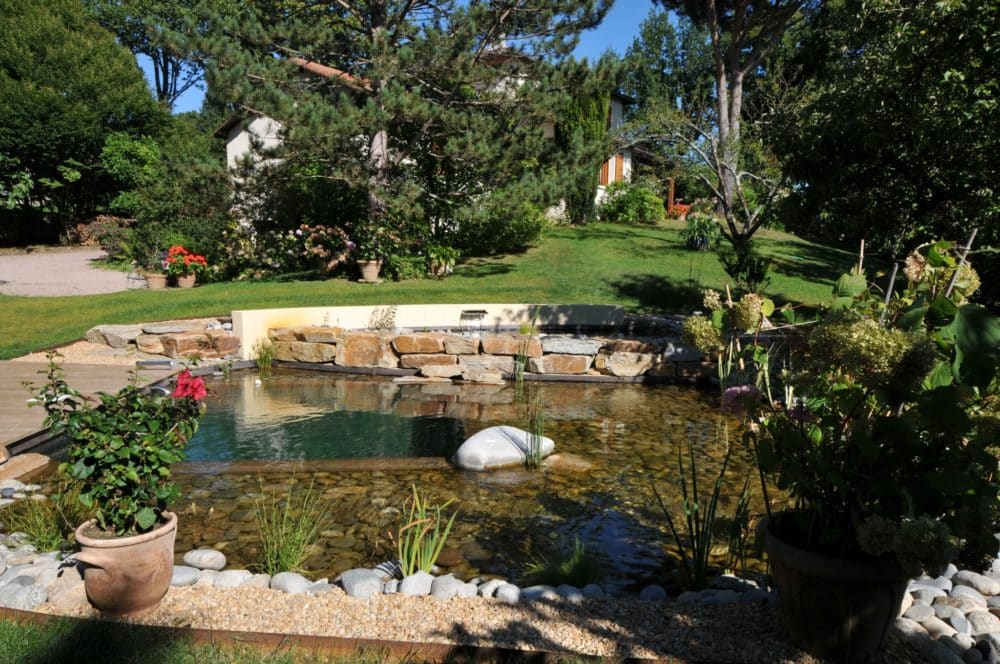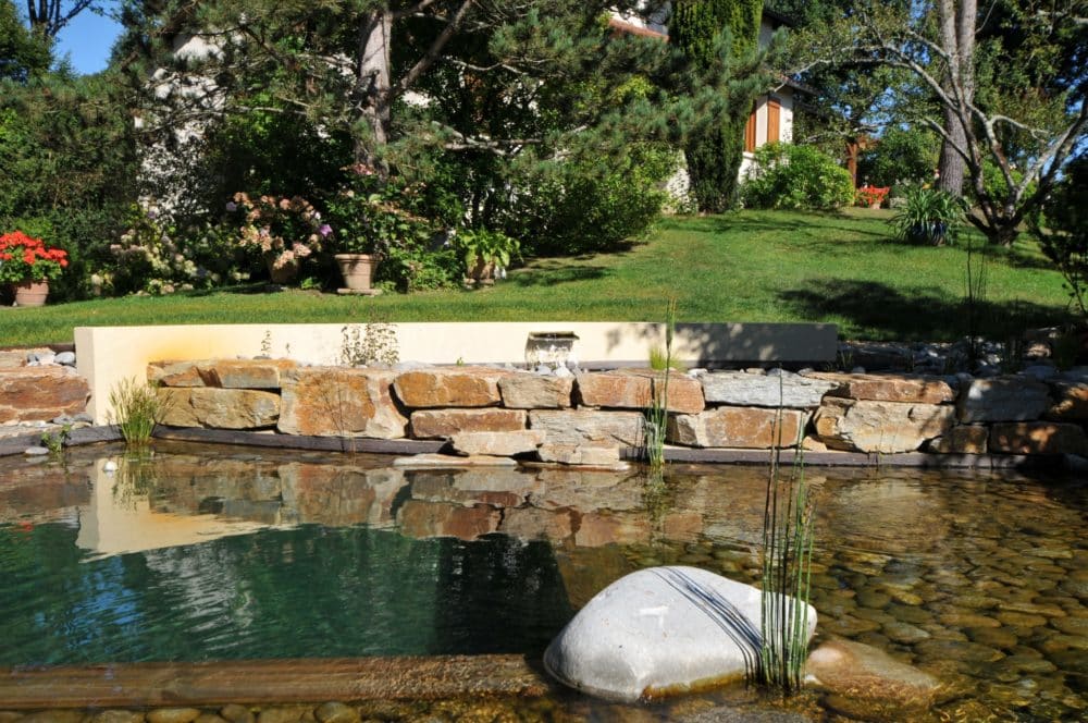 Le choix s’est orienté vers le bassin de baignade aux formes naturelles et matériaux locaux plutôt que vers une piscine.