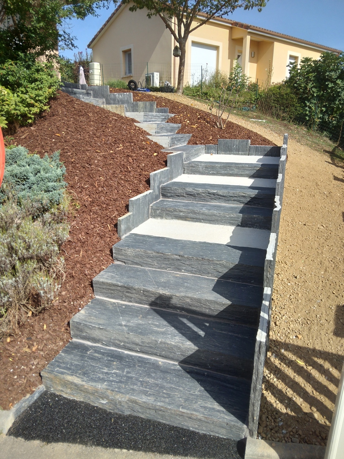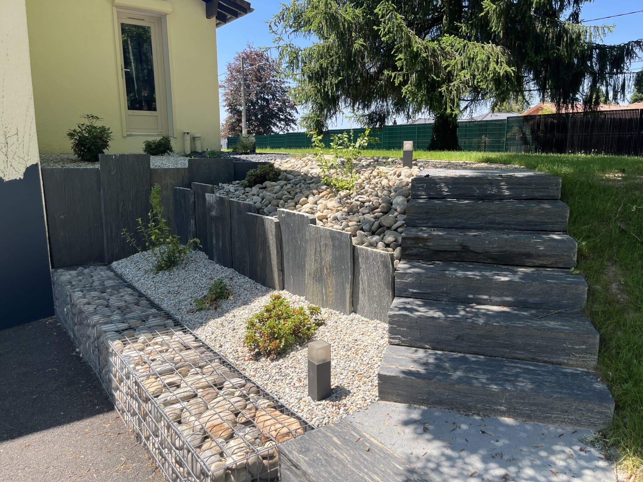 Quoi de plus harmonieux qu’un jardin en terrasses ? Ses niveaux et paliers qui ne vous laissent découvrir le jardin qu’en vous y aventurant. Emmarchements en enrochement, marches en pierre ou en pavés, aménagements en bois… de multiples solutions – conçues par nos équipes de maçons spécialisés – existent : il y en a forcèment une qui convient à vos besoins.